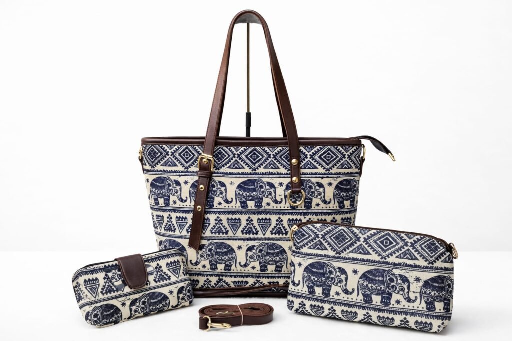 Is combo set me 4 bags milte hain – Tote Bag, Sling Bag, Pouch aur Wallet.